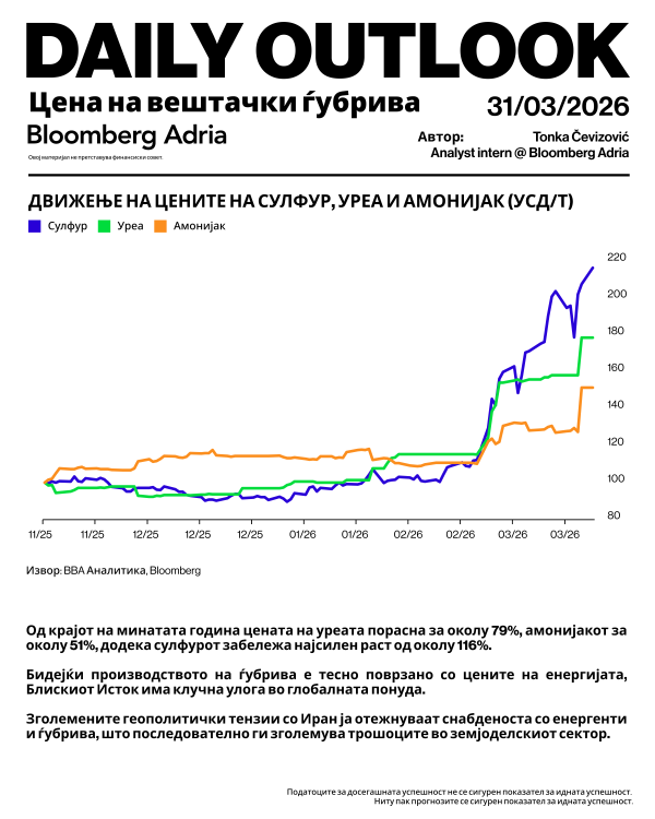 Поради воените случувања и прекинот во снабдувањето со енергенти од земјите од Заливот, очекувањата за дел од увозните цени, пред сè за цените на нафтата, се ревидирани поизразено во нагорна насока.