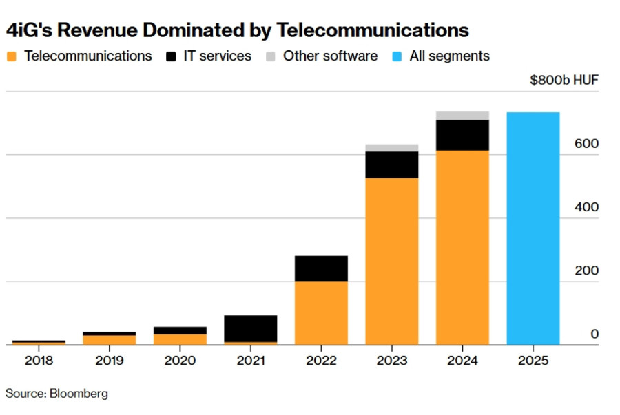 Пред осум години, кога претседателот Гелерт Јасаи, сојузник на Орбан и мнозински сопственик, ја презеде компанијата, „4иГ“ беше ИТ изведувач вреден околу 20 милиони долари. Денес вреди околу 2,3 милијарди долари, со активности во телекомуникации, одбрана и вселенската индустрија, и со договори со „Локхид Мартин“ (Lockheed Martin Corp.), „Аксиом Спејс“ (Axiom Space Inc.) и „Рајнметал“ (Rheinmetall AG).