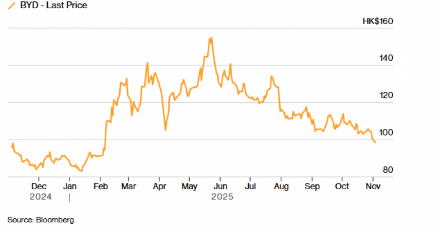 Акциите на БЈД (BYD Co.) во понеделникот се приближија до најниското ниво во речиси девет месеци, откако производителот на електрични возила забележа втор последователен пад на продажбата и повторно се најде на второто место на кинескиот пазар.