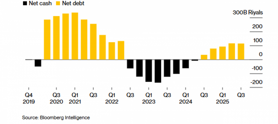Цените на нафтата во Лондон годинава паднаа за 13 отсто, на околу 65 долари за барел – далеку под повеќе од 90 долари колку што, според Меѓународниот монетарен фонд (ММФ), ѝ се потребни на Саудиска Арабија за да го избалансира буџетот. Тоа доведе до повлекување или одложување на некои големи инфраструктурни и туристички проекти во кралството, додека „Арамко“ го забави темпото на дел од домашните рафинериски и хемиски програми, насочувајќи се кон развој на голем проект за природен гас.