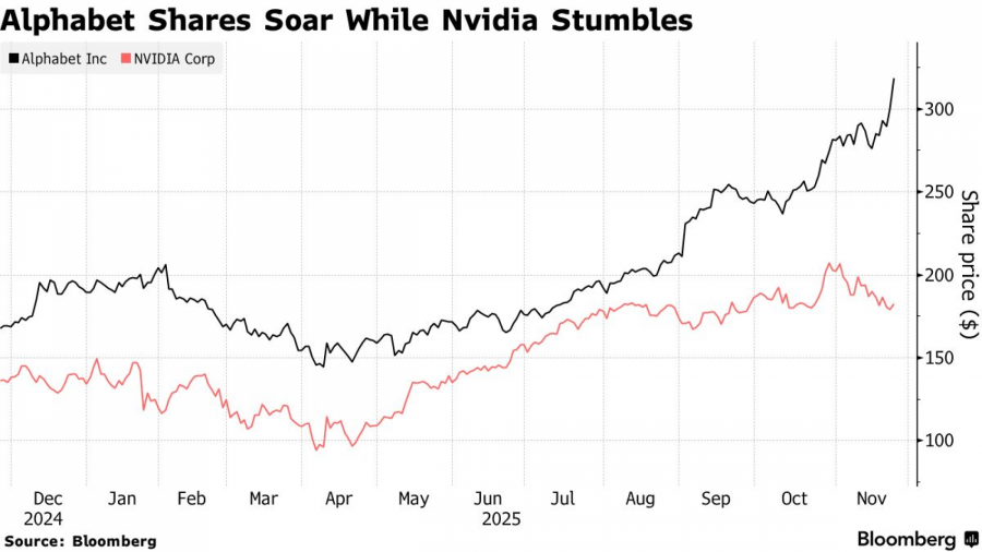 Акциите на „Енвидија“ паднаа за до 2,7 проценти во тргувањето по затворањето на берзата. Акцииите, пак, на „Алфабет“ (Alphabet Inc.), сопственикот на „Гугл“, пораснаа за 2,7 проценти, продолжувајќи го неодамнешниот раст поттикнат од оптимизмот околу најновата верзија на нејзиниот ВИ-модел Џемини.