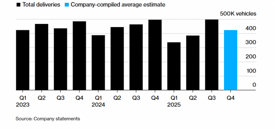 Според пресметките на „Тесла“, аналитичарите во просек очекуваат компанијата да испорача 422.850 автомобили во четвртиот квартал, што претставува пад од 15 отсто во однос на истиот период лани. За споредба, просечната проценка што ја собира и обработува „Блумберг“ изнесува 445.061 возило, што е пад од 10 отсто.
