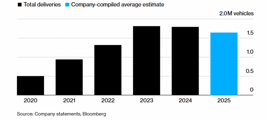 Иако тимот за односи со инвеститори на „Тесла“ со години составува просечни проценки за испораките, компанијата досега овие бројки не ги објавуваше на својата страница за инвеститори. Производителот на електрични возила е на пат да забележи втора последователна година со пад на годишната продажба, при што според просечната проценка се очекуваат околу 1,6 милиони испорачани возила, повеќе од 8 отсто помалку во однос на лани.