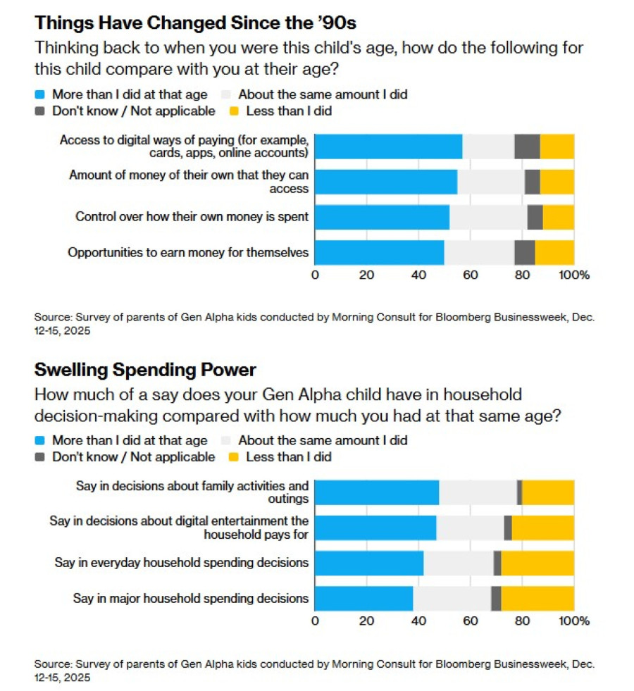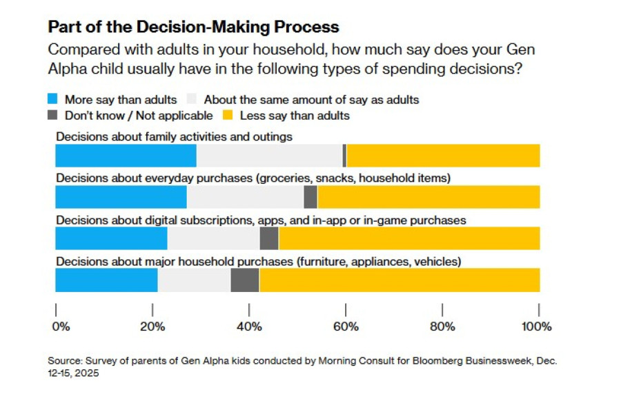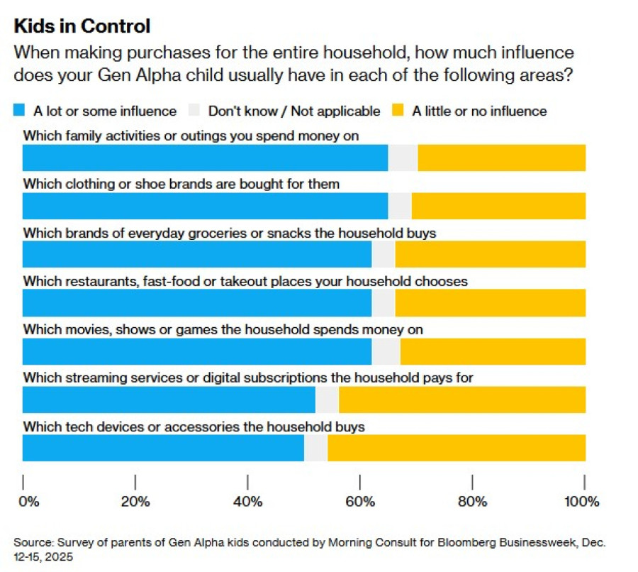 Извор: Анкета меѓу родители на деца од генерацијата алфа, спроведена од „Морнинг консалт“ за „Блумберг бизнисвик“, 12–15 декември 2025 година