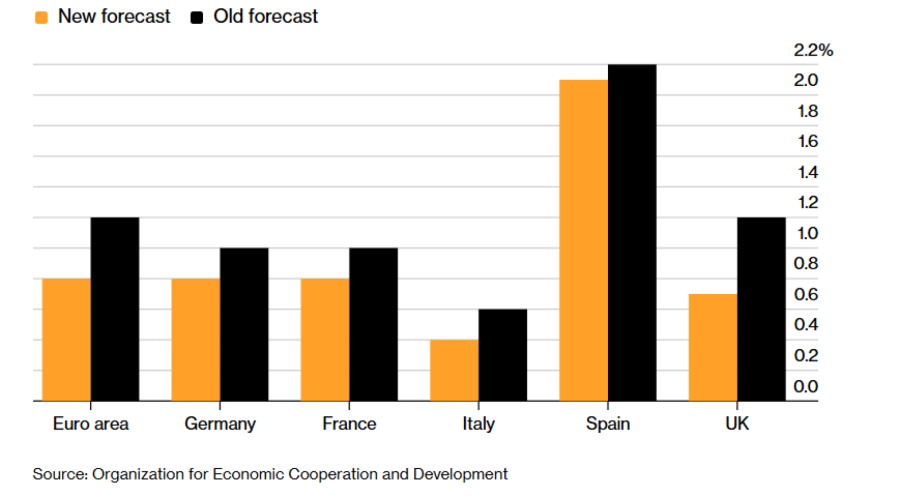 Додека цените на нафтата и гасот растат, а показателите за деловната доверба нагло паѓаат, Германија и Италија се меѓу земјите што размислуваат за намалување на своите официјални прогнози за економски раст, по лошата процена што минатата недела ја изнесе Европската централна банка.