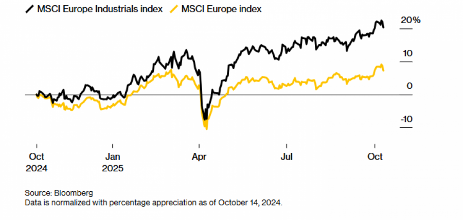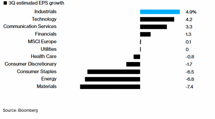 Според податоците на „Блумберг интелиџенс“ (Bloomberg Intelligence), индексот MSCI Europe Industrials треба да забележи раст на добивката по акција од 4,9 отсто за третиот квартал – повеќе од кој било друг сектор во регионот.