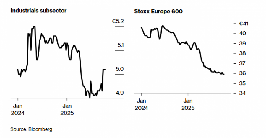 Поттикнат од растот на вештачката интелигенција (ВИ) и трошоците за одбрана, европскиот индустриски сектор е еден од само два што бележат позитивни ревизии на процените во последниот период – заедно со финансискиот сектор. Во меѓувреме, очекувањата за поширокиот индекс Stoxx Europe 600 се намалуваат, бидејќи инвеститорите сè повеќе предвидуваат послаба сезона на добивки.