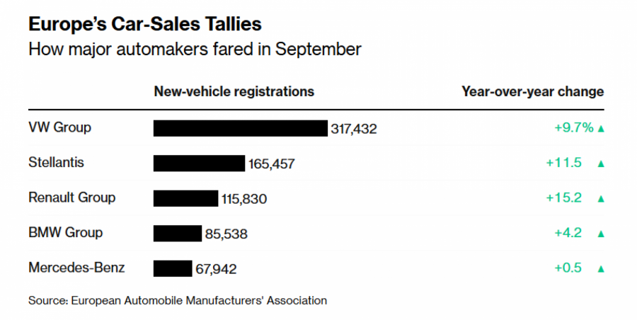Во Европа, купувачите од Обединетото Кралство го зголемија бројот на регистрации во септември, месец кој традиционално е силен поради годишното издавање на нови регистарски таблички. Поседувањето автомобил со најновата нумерација може да ја подобри неговата продажна вредност.