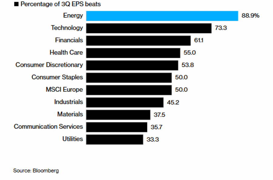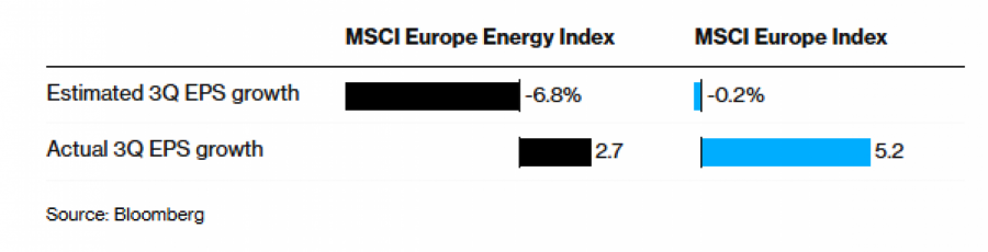 Според податоците на „Блумберг интелиџенс“ (Bloomberg Intelligence), индексот MSCI Europe Energy забележа раст на заработката по акција од 2,7 отсто, наспроти очекуваниот пад од 6,8 отсто. Компаниите од секторот за нафта и гас имаа и највисок процент на резултати подобри од прогнозите во тој период.