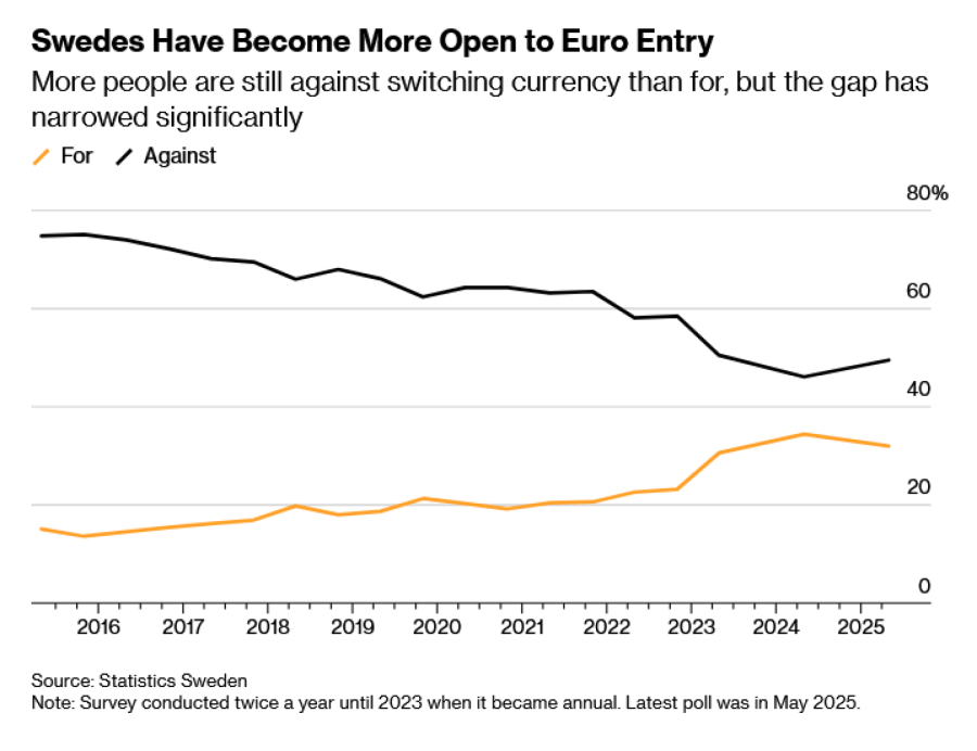 Јавната поддршка за еврото порасна во последните години во најголемата нордиска економија, иако тоа останува прашање на раздор, а самата промена на валутата веројатно ќе трае со години. Сепак, промената на шведското јавно мислење би била пресвртница за ЕУ и би додала кредибилитет на еврото во време кога непредвидливоста на Трамп ја поткопува довербата во доларот.