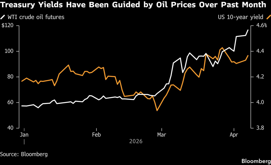 Цените на нафтата, клучен двигател на приносите на американските обврзници од почетокот на американските напади врз Иран на 28 февруари, пораснаа, при што фјучерсите на референтната американска нафта Вест Тексас скокнаа и до 4,6 отсто во однос на затворањето, достигнувајќи највисоки нивоа во повеќе години во понеделникот. Приносите кон крајот на март достигнаа највисоки нивоа од почетокот на годината поради растот на цените на енергијата, но потоа се повлекоа поради растечките стравувања дека шокот на нафтениот пазар може да го забави економскиот раст.