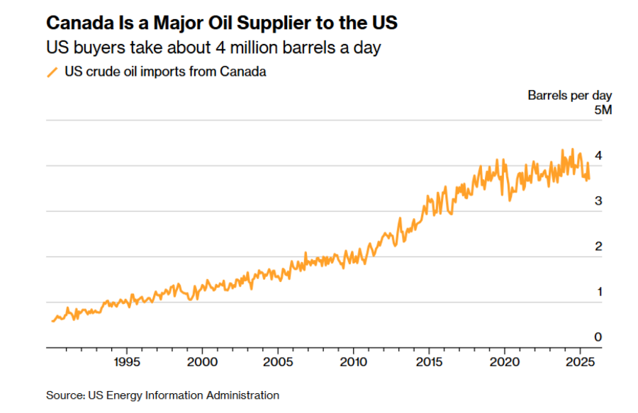 САД увезуваат околу 4 милиони барели нафта дневно од Канада, која е главен извор на сурова нафта за рафинериите во американскиот Среден Запад. САД исто така се голем купувач на метали и ѓубрива од својот северен сосед.