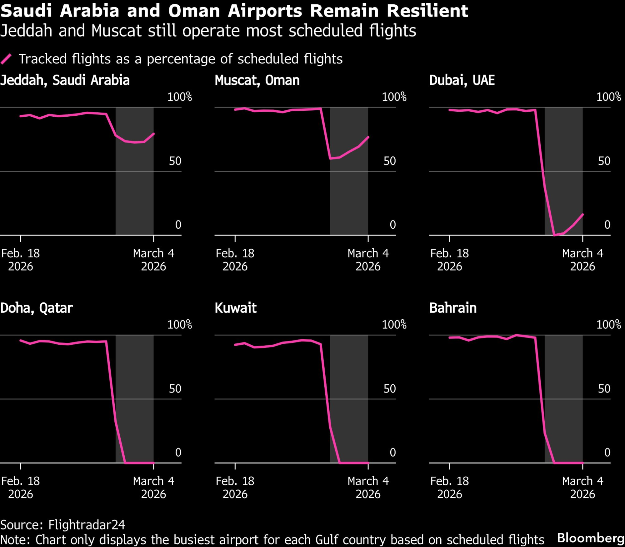 Аеродромите во Саудиска Арабија и Оман остануваат отпорни - Џеда и Мускат сè уште ги извршуваат повеќето редовни летови.
