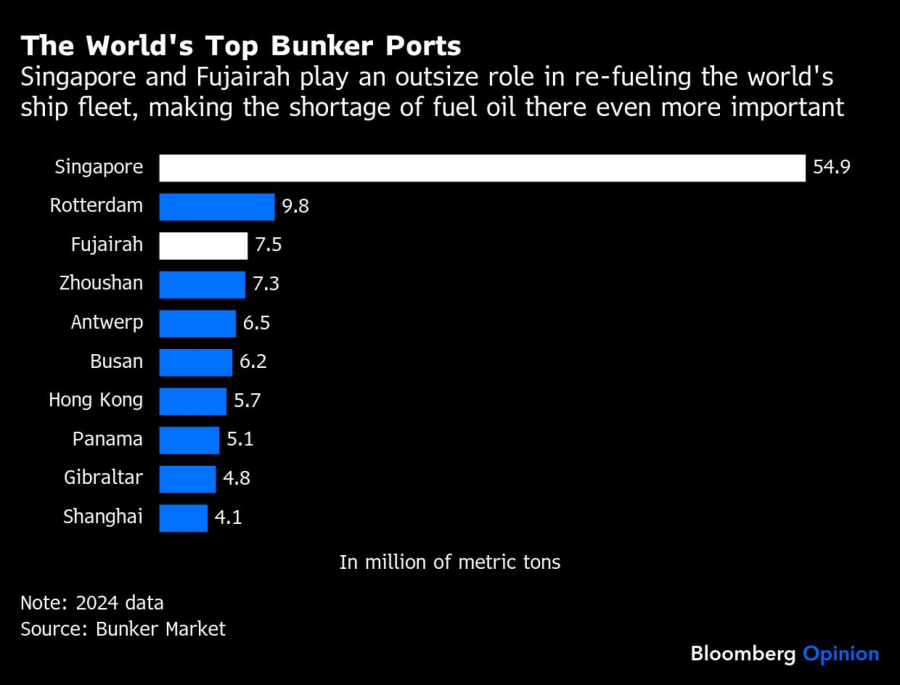 Најдобрите бункерски пристаништа во светот | Сингапур и Фуџаира играат огромна улога во полнењето гориво на светската бродска флота, што го прави недостигот на мазут таму уште поважен/Bloomberg Opinion