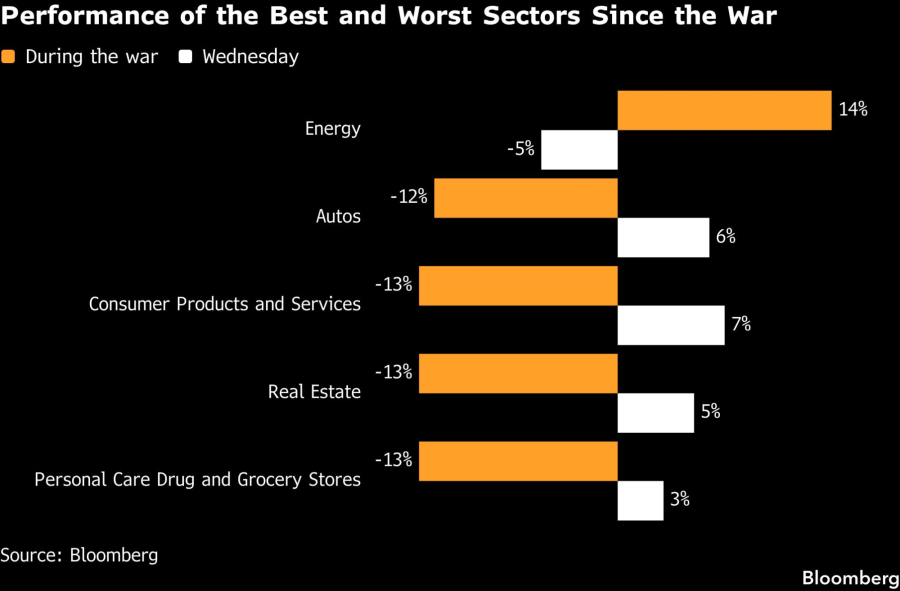 Индексот Stoxx Europe 600 порасна за 3,8 отсто, што е најголем дневен раст од април 2025 година. Акциите кои најмногу паднаа за време на војната забележаа најголеми добивки. „Изи џет“ и „Туи“ скокнаа за повеќе од 10 отсто, при што акциите од секторот патувања и туризам го предводеа растот на индексот. Единствениот сектор во минус беше енергетиката.