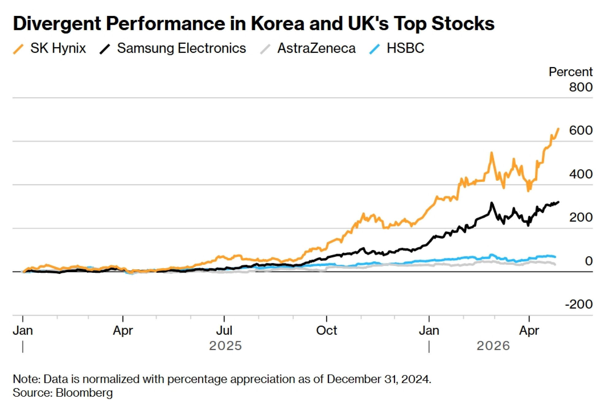 Растот на корејските акции го нагласува глобалното насочување кон компании поврзани со вештачката интелигенција, што ги поттикна добивките кај двете најголеми листирани компании во земјата: „Самсунг“ (Samsung Electronics Co.) и „СК Хајникс“ (SK Hynix Inc.).