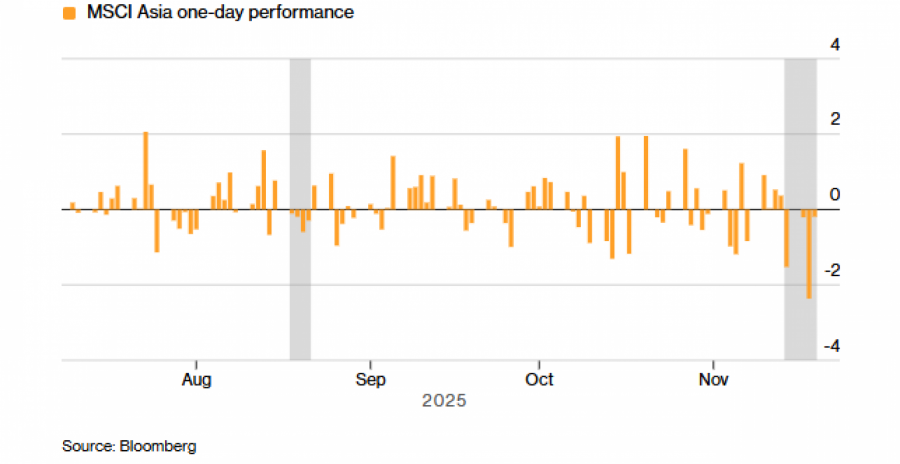 Друг клучен фокус за инвеститорите е дали Федералните резерви ќе ги намалат каматните стапки следниот месец. Трговците сè помалку се уверени дека ќе има ново намалување на цената на задолжувањето, при што своп-пазарот сега имплицира помала од 50 отсто веројатност за потег во декември.