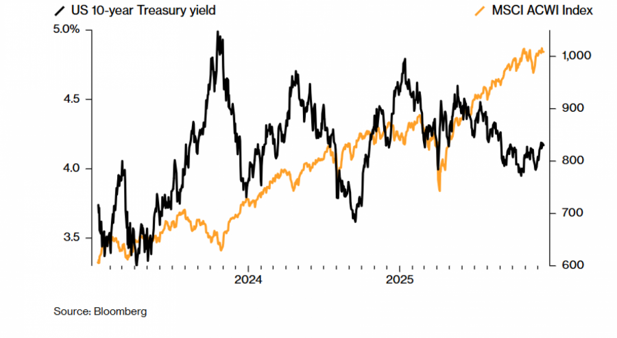 Индексот MSCI All Country World, еден од најшироките показатели за глобалните пазари на акции, достигна рекордно ниво откако Фед ги намали каматните стапки на 10 декември. Индексите S&P 500 и Nasdaq 100 бележат раст во 2025 година, поттикнати и од ентузијазмот околу напредокот во ВИ и од изгледите за поповолна монетарна политика.