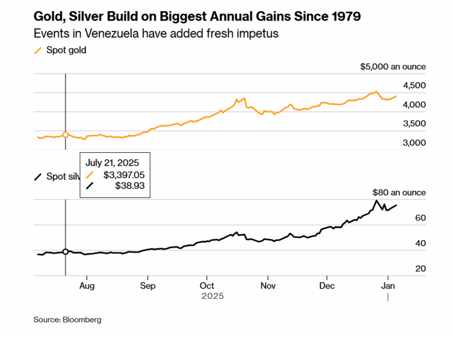 Технолошките акции и вештачката интелигенција повторно ги движат светските берзи на почетокот на 2026 година, но и златото и среброто повторно бележат подем, продолжувајќи ги силните резултати од лани.