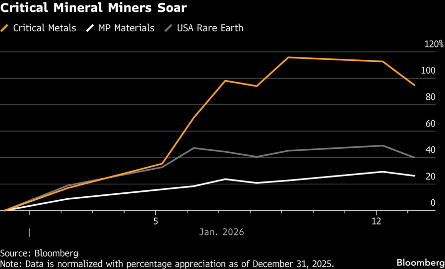 Акциите и на други рудари во тој потсектор, вклучувајќи ги „МП матиријалс“ (MP Materials Corp.) и „УСА реар ‘рт“ (USA Rare Earth Inc.), исто така скокнаа откако претставниците на Трамп и европските лидери разменија критики, а данските претставници предупредија за можен крај на НАТО.