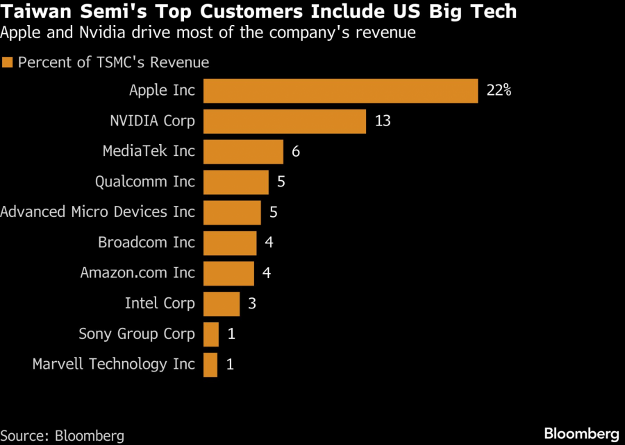 Тензиите во врска со Тајван би го насочиле фокусот кон „Тајван семикондактор“ (Taiwan Semiconductor Manufacturing Co.), компанија меѓу чии клиенти се многу од најголемите технолошки компании во САД, вклучувајќи ги „Епл“ (Apple Inc.), „Енвидија“, „Бродком“ (Broadcom Inc.) и „Амазон“ (Amazon.com Inc).