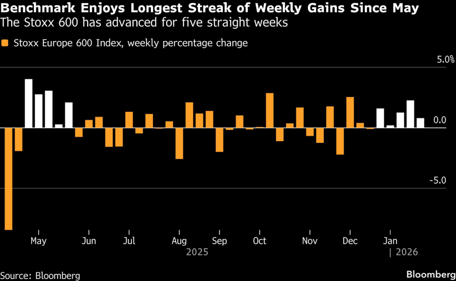 Европските берзи ја објавија својата петта недела по ред со добивки. Последен пат постигнаа таква низа во мај 2024 година. Инвеститорите се уверени во побарувачката за вештачка интелигенција. Акциите на „Ново Нордиск“ скокнаа за 6,5 проценти откако британскиот регулатор одобри поголема доза на лекот против дебелина. Индексот Stoxx Europe 600 малку се промени до крајот на тргувањето во петокот. Сепак, ја заврши неделата со 0,8 проценти во зелено.