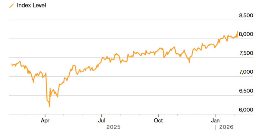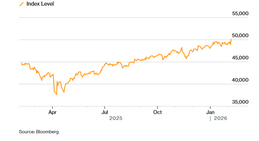 Повеќе од 400 акции во S&P 500 забележаа раст. Верзијата на S&P 500 во која сите акции имаат исто влијание, без доминација на најголемите компании, достигна рекорд. Russell 2000 порасна за 3,6 отсто, додека Nasdaq 100 се зголеми за 2,15 отсто. Откако затвори над 40.000 поени во мај 2024 година, на Dow Average му беа потребни 630 дена за првпат да ја надмине границата од 50.000 поени, забележа Џефри Јејл Рубин од „Бирини Асошиејтс“ (Birinyi Associates Inc.).