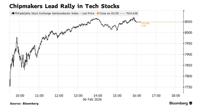 По наглиот пад на некои од најпреполнетите тргувања на Волстрит, S&P 500 порасна за 2 отсто. Dow Jones Industrial Average ја достигна границата од 50.000 поени. ЕТФ кој ги следи софтверските компании додаде 3,5 отсто. Индексот на производители на чипови скокна за 5,7 отсто, откако извршниот директор на „Енвидија“ (Nvidia Corp.), Џенсен Хуанг, изјави за „Си-Ен-Би-Си“ (CNBC) дека побарувачката за ВИ е „неверојатно висока“. Акциите на „Амазон“ (Amazon.com Inc.) паднаа за 5,6 отсто по најавата за планови за вложување 200 милијарди долари во оваа технологија.