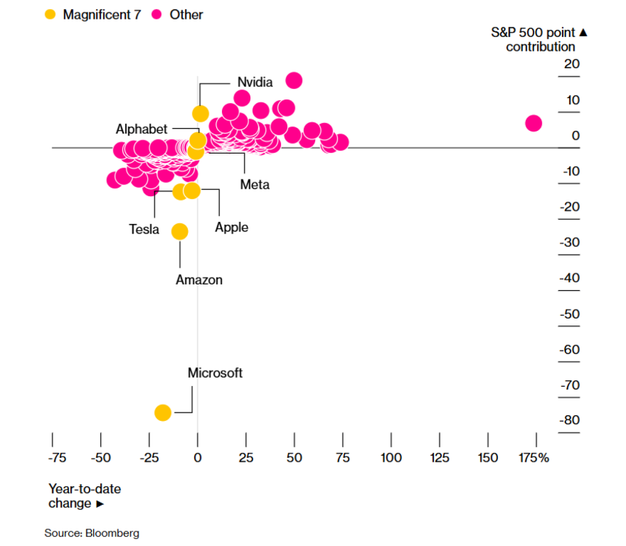 Акциите на „величенствените седум“ имаа влијание на S&P 500 оваа година