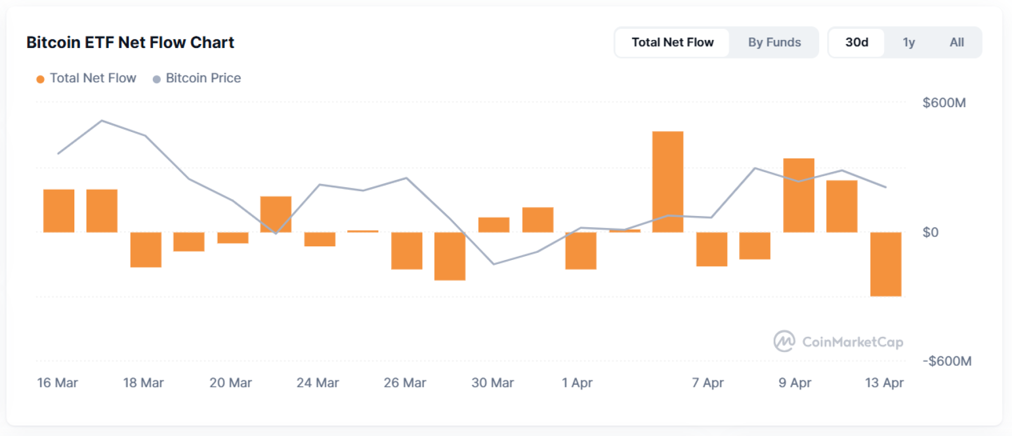 Ден претходно беше забележан вкупен нето-одлив од околу 300 милиони долари од биткоин ЕТФ-ови (exchange-traded funds – фондови со кои се тргува на берза), со што продолжи нестабилниот тек на овие финансиски инструменти. Трговците внимателно ги следат овие параметри, бидејќи ЕТФ-овите остануваат главен канал за институционална побарувачка за биткоин, па континуираните приливи по правило ја обезбедуваат долната граница на цената и ја намалуваат волатилноста. Исто така, наглите пресврти во приливите може да предизвикаат значителен притисок на продажба, бидејќи ЕТФ-овите исто така нудат лесен излез за големите институционални сопственици.