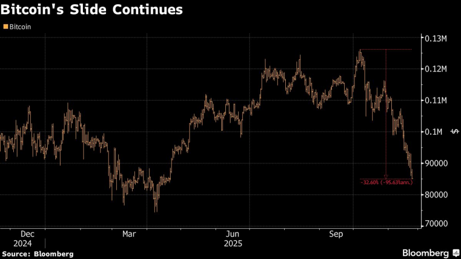 Најголемата криптовалута падна под 90.000 долари, продлабочувајќи ја распродажбата што ги збриша сите добивки годинава.