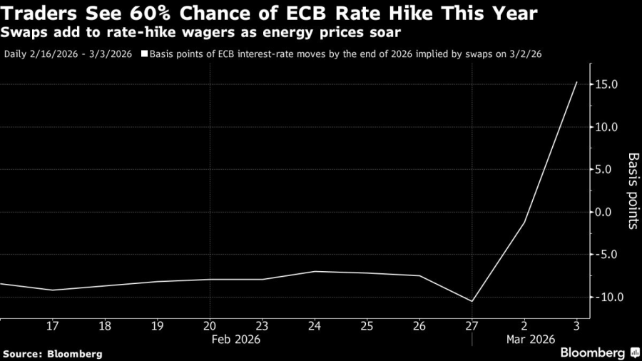 Главниот економист на ЕЦБ, Филип Лејн, предупреди дека долготрајна војна на Блискиот Исток може да предизвика „значителен скок“ на цените поттикнати од енергијата и остар пад на производството. Податоците во вторникот ја нагласија заканата, бидејќи инфлацијата во еврозоната неочекувано се забрза, поддржувајќи го вниманието на ЕЦБ околу каматните стапки.
