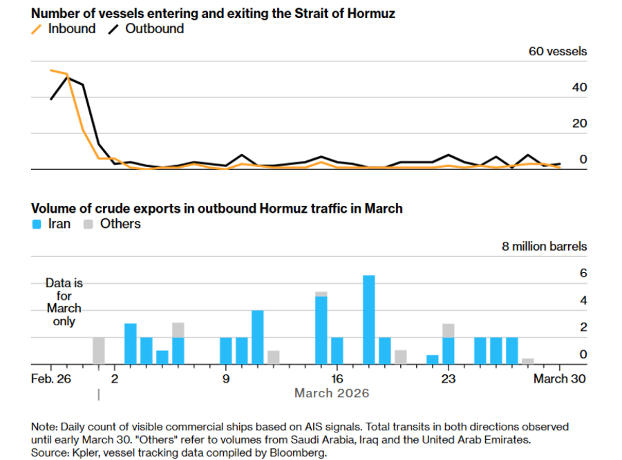 Поморскиот сообраќај низ Ормускиот теснец — клучна рута за извоз на нафта, природен гас и други суровини од Персискиот Залив и натаму е сериозно ограничен повеќе од еден месец откако САД и Израел започнаа напади врз Иран.