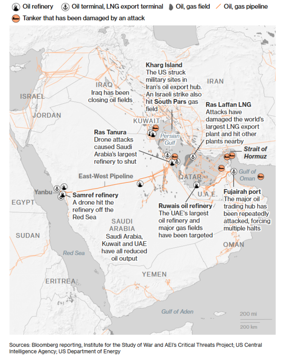 Обединетите Арапски Емирати исто така делумно можат да го заобиколат Ормускиот теснец. Но пристаништето Фуџеира, кое се наоѓа на крајот од нафтовод што ги поврзува нафтените полиња на земјата со Оманскиот Залив, беше нарушено од напади со дронови. И додека Ирак повторно го активира протокот преку нафтоводот што го поврзува неговиот полуавтономен регион Курдистан со турското медитеранско пристаниште Џејхан, оваа рута може да пренесе само дел од количините што земјата вообичаено ги извезува преку Персискиот Залив.