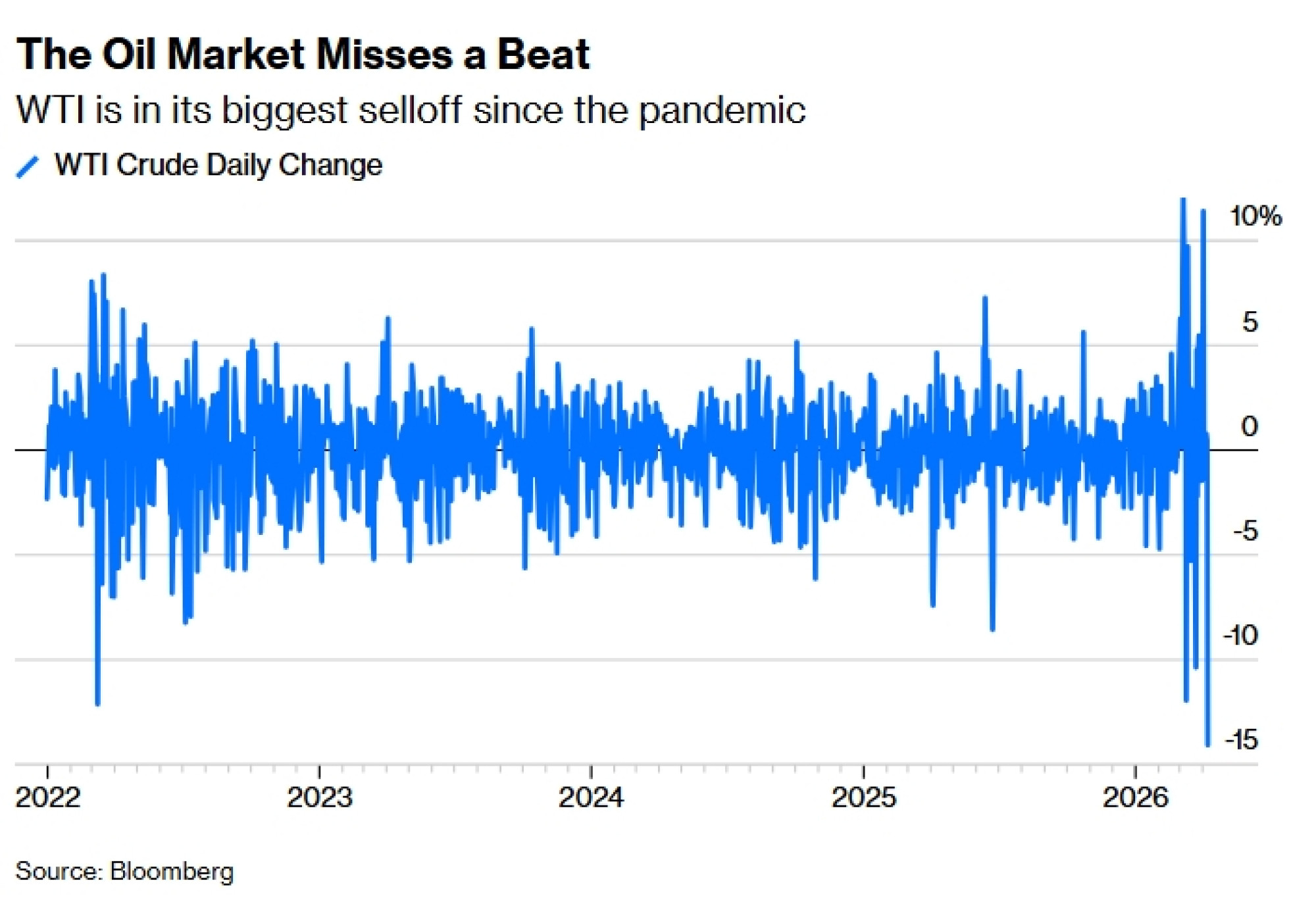 Ако настаните се стават во понов контекст, ова беше најголемиот дневен пад на цената на нафтата ВТИ (West Texas Intermediate) од пандемијата.