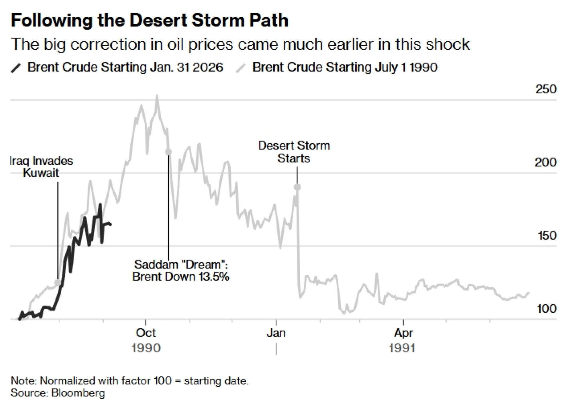 Почетната реакција на пазарот го третира прекинот на огнот како момент сличен на почетокот на операцијата Пустинска бура, кога разрешувањето одеднаш стана јасно. Ако тоа се оствари, овој пат ќе дојде побрзо, без изложување на светот на екстремите од кувајтската криза.