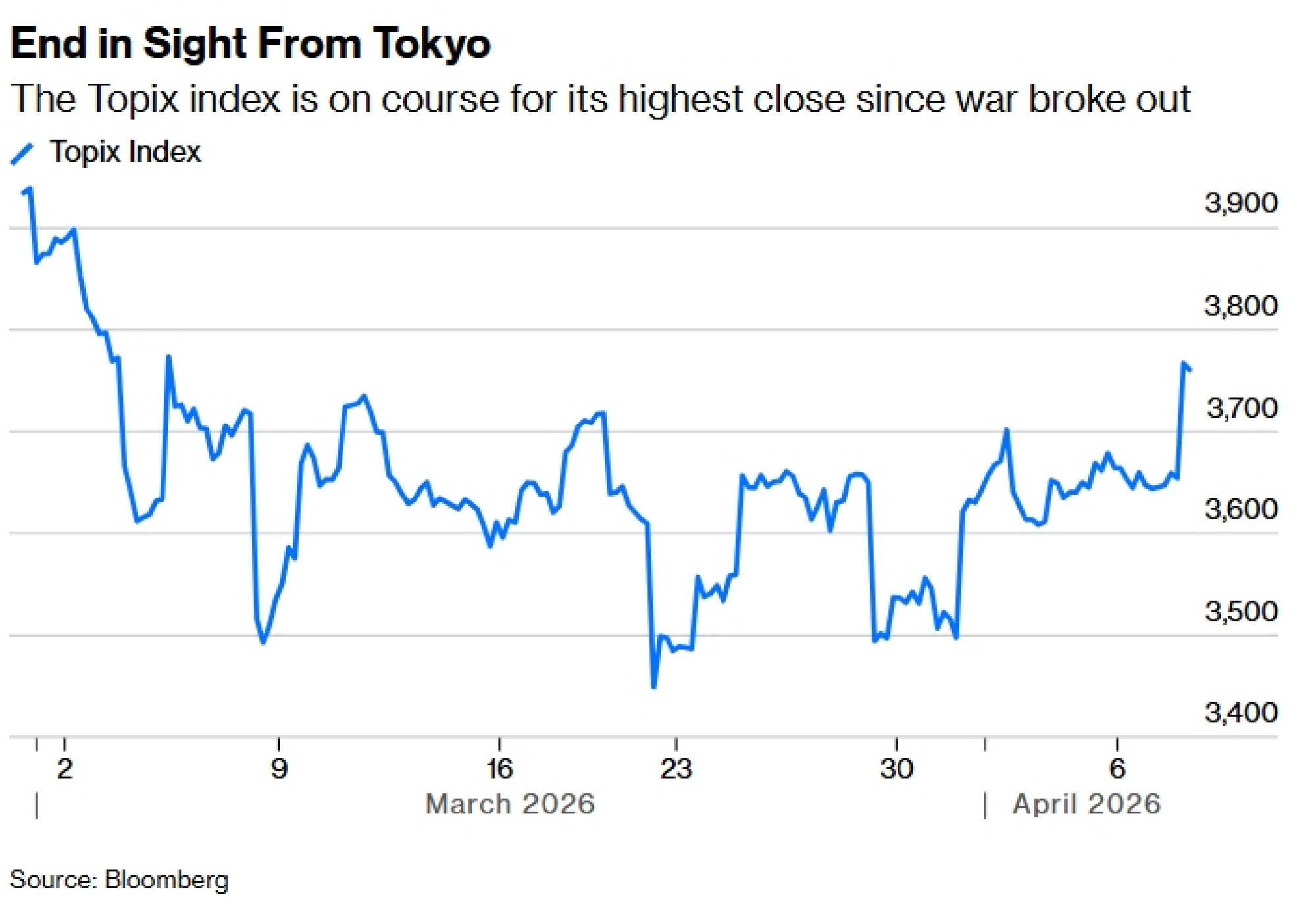 Тоа веќе се гледа во силниот раст на американските термински договори за акции. Во раното тргување во Токио, индексот Topix се врати на највисоко ниво од избувнувањето на војната на 28 февруари.