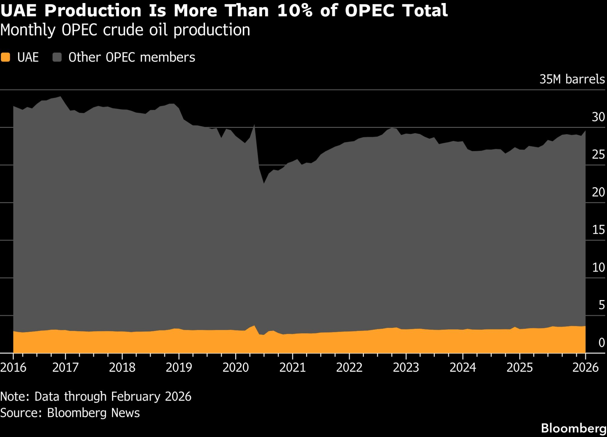 Сепак, иако Абу Даби брзо ги зголемува капацитетите и има амбиции дополнително да го зголеми производството, не е јасно уште колкав простор има за раст. Процените за производството на ОАЕ значително се разликуваат, но многу аналитичари и трговци веруваат дека земјата и пред војната произведувала блиску до максимумот. Во февруари производството изнесуваше 3,64 милиони барели дневно, значително над официјалните податоци, според Меѓународната агенција за енергија. Неколку трговци сметаат дека вистинската бројка е уште повисока.