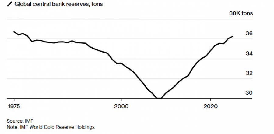 Централните банки исто така одиграа клучна улога во растот на цената на златото. По глобалната финансиска криза тие преминаа од нето-продавачи во нето-купувачи на благородниот метал. Темпото на купување се удвои по одлуката на САД и нивните сојузници во 2022 година да ги замрзнат девизните резерви на Русија поради целосната инвазија врз Украина. Тоа поттикна многу централни банки да го диверзифицираат портфолиото, а високата инфлација и шпекулациите дека американската влада би можела да биде понеповолна кон странските доверители дополнително ја зголемија привлечноста на златото за креаторите на монетарната политика.