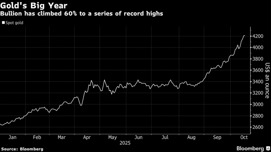 „Извонредниот раст на златото не покажува знаци на забавување и е поддржан од очекуваните намалувања на стапките“, напишаа аналитичарите на АНЗ (ANZ Group Holdings Ltd.), Сони Кумари и Даниел Хајнс. Тие ја зголемија својата прогноза за цената на благородниот метал за крајот на годината на 4.400 долари за унца, со врв од близу 4.600 долари, кој се очекува да се достигне до јуни 2026 година.