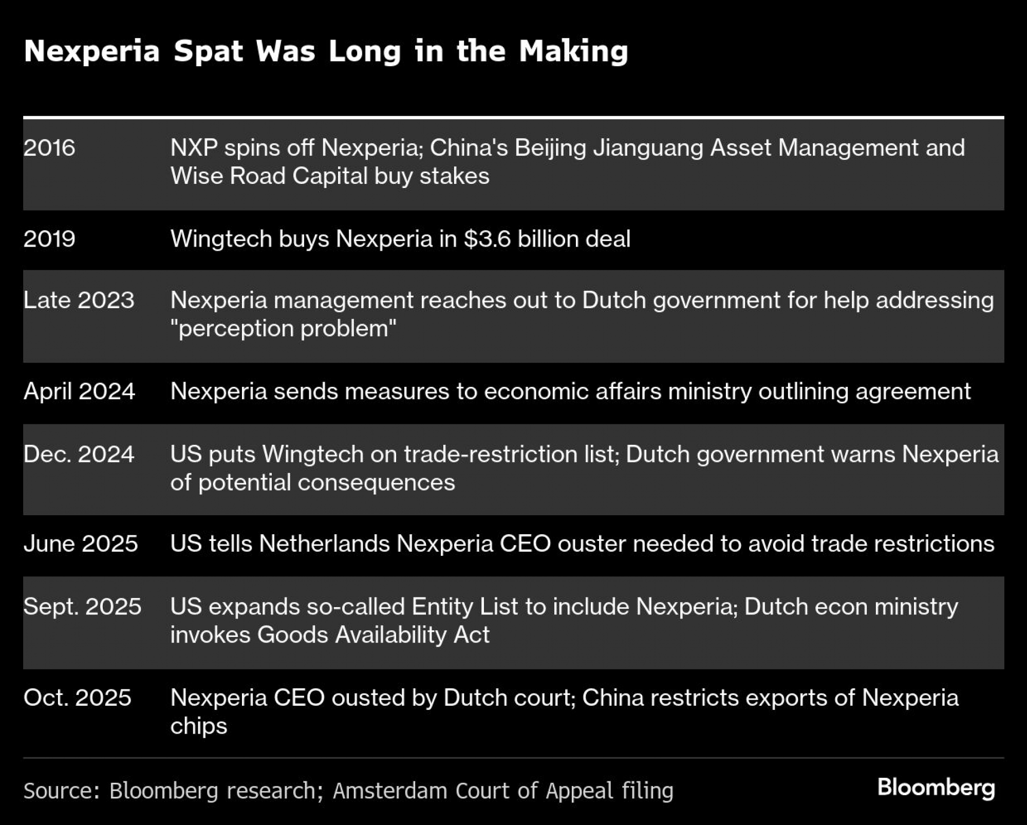 Овој месец, Пекинг ја блокираше „Некспирија“ — клучен снабдувач на чипови за автомобилската и потрошувачката електроника — од извоз од нејзините капацитети во Кина. Потегот беше одговор на холандската влада која презеде контрола врз кинескиот сопственик на компанијата, што ги нагласи влошените трговски односи меѓу Кина и Западот.