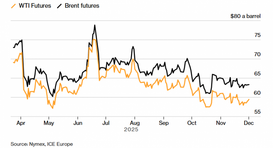 Цената на нафтата во ноември го забележа четвртиот последователен месечен пад, бидејќи очекувањата за растечки вишок ја притискаа прогнозата. Меѓународната агенција за енергија предвидува рекорден вишок во 2026 година. Сепак, геополитичките тензии на Блискиот Исток и во други региони често ги одржуваа цените повисоки годинава.
