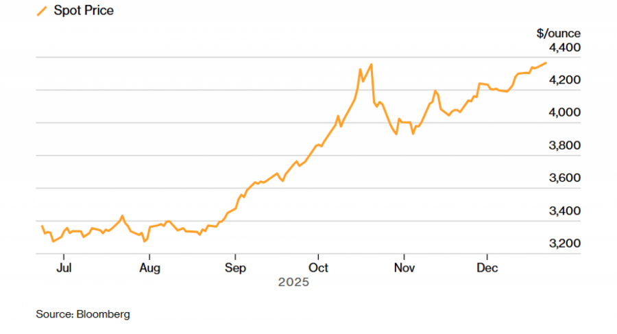 Златото брзо закрепна по повлекувањето од врвот во октомври, кога растот беше оценет како прегреан. „Голдман Сакс“ (Goldman Sachs Group Inc.) е меѓу неколкуте банки што прогнозираат продолжување на растот на цените во 2026 година, со основно сценарио од 4.900 долари за унца, а процените укажуваат дека цените може да го надминат тоа ниво. Инвеститорите во ЕТФ, според банката, почнуваат да се натпреваруваат со централните банки за ограничената физичка понуда.