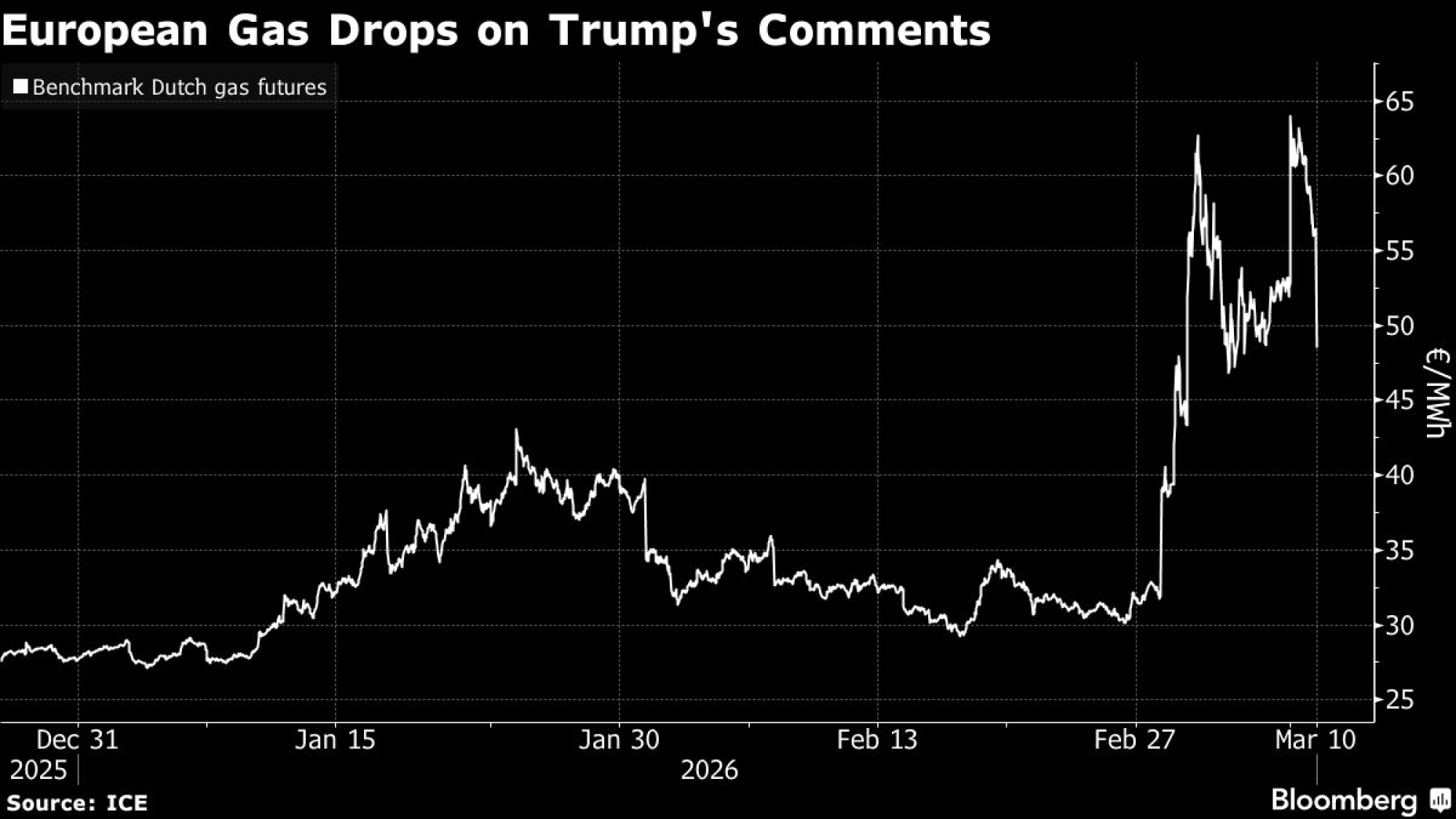 Цената на европскиот природен гас падна откако американскиот претседател Доналд Трамп најави дека војната со Иран би можела наскоро да заврши, додека истовремено се соочува со сѐ поголем притисок поради влијанието на конфликтот врз енергетските пазари.