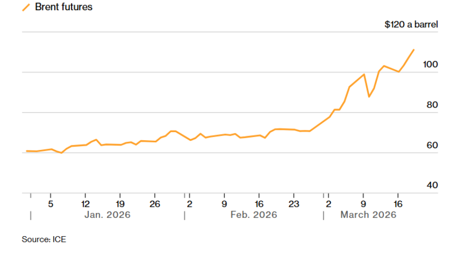 Брентот поскапе за дури 5,1 отсто и се приближи до 113 долари за барел, додека најтргуваниот договор за ВТИ се движеше околу 96 долари. Американскиот природен гас скокна за дури 6,5 отсто. Иран изврши напади врз голем терминал за течен природен гас во Катар, еден од неколкуте енергетски објекти на кои Техеран најави дека ќе цели по ударите врз огромното гасно поле Јужен Парс во Исламската Република.