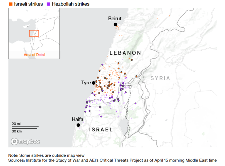 Борбите во голема мера се смирија по прекинот на огнот, освен во Либан, каде што Израел продолжува со операции против Хезболах, поддржан од Иран. Разговорите меѓу Израел и Либан започнаа во вторникот во Вашингтон со цел да се адресира паралелниот конфликт, во кој загинале повеќе од 2.000 луѓе, според либанските власти. Овие разговори се одвоени од преговорите меѓу САД и Иран и се дел од пошироките напори за ограничување на влијанието на Иран преку Хезболах, изјави американски претставник.