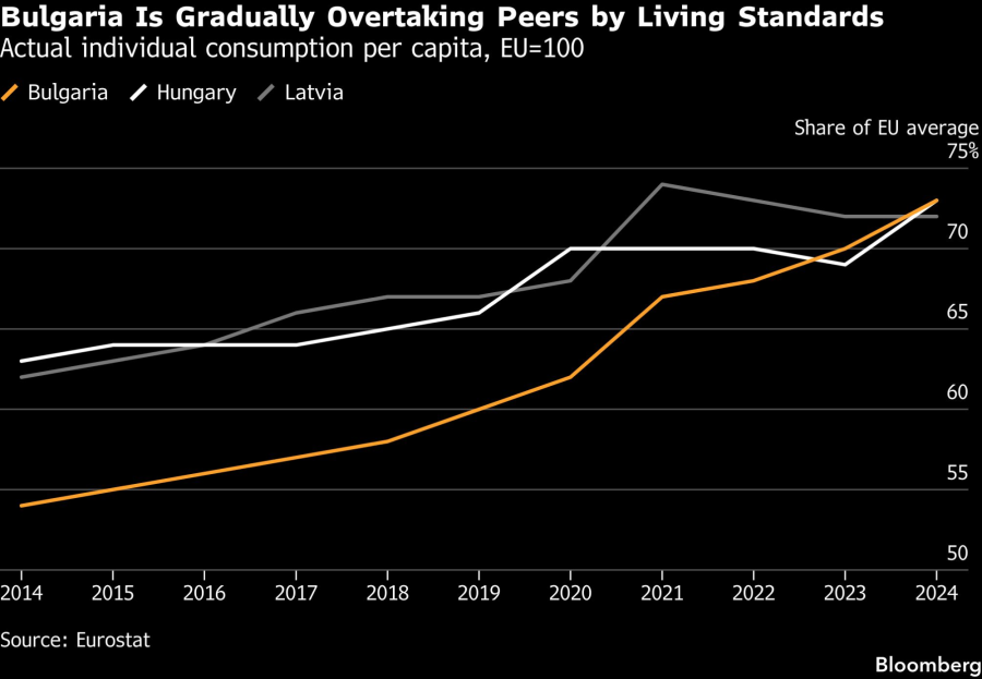 Бугарија постигна голем напредок откако се приклучи на ЕУ во 2007 година. Животниот стандард, мерен преку потрошувачка по глава на жител прилагодена на локалните цени, сега е речиси на исто ниво со оној на Унгарија. Земјата со 6,4 милиони жители го усвои еврото на 1 јануари, и покрај обидите на Радев да го одложи членството со референдум.