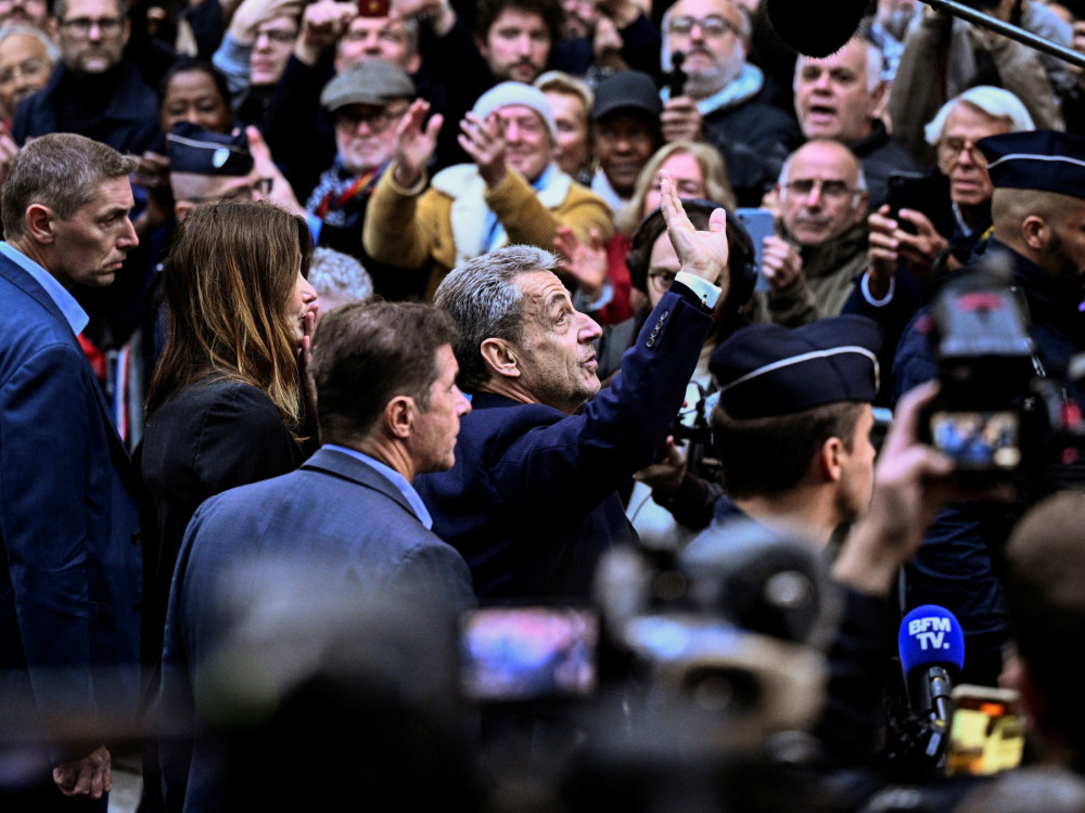 Саркози го напушти својот дом држејќи се за рака со сопругата Карла Бруни, мавтајќи кон насобраните граѓани додека се качуваше во црн автомобил. Француските телевизиски екипи го следеа цело време, а неговото „Рено“ подоцна помина низ белата врата на озлогласениот париски затвор, која се затвори зад него.
