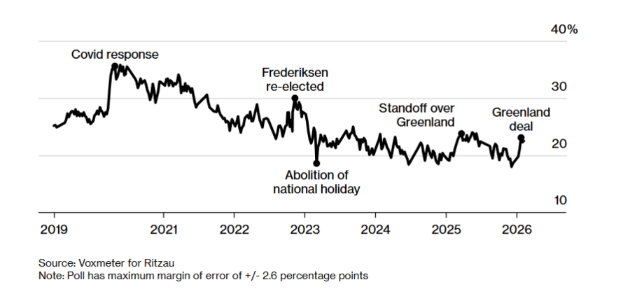 Јавната поддршка се сврте во корист на Мете Фредериксен по нејзиниот судир со администрацијата на САД, оставајќи ја да размислува дали да распише предвремени избори за да го искористи моментот. Гласањето мора да се одржи најдоцна до 31 октомври, но Фредериксен може да ги повика Данците на избори кога и да процени дека е најповолно.