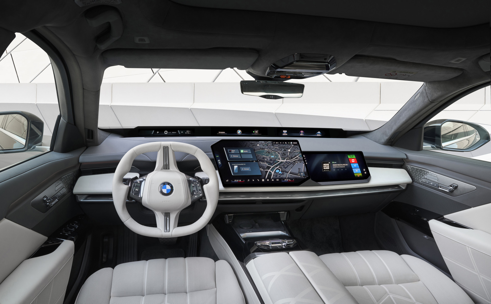 За Кинезите да не се жалат поради недостиг од екрани, дополнителен е предвиден и за совозачот. Серијата 7 вкупно може да има шест екрани. По еден имаат и патниците на задните седишта во вратите - за управување со завесите, седиштата, климатизацијата и масажата. Дополнително е достапен и голем „киноекран“ што овозможува видеоконференции и се сокрива во автомобилскиот плафон. На возачот при возење му помага и тродимензионален хедап-дисплеј, кој прикажува податоци и мапи на ветробранското стакло. За возачот е наменет и нов волан, како и личен асистент со вештачка интелигенција - Алекса на „Амазон“.
